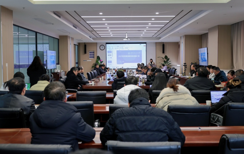 2026年1月6日下午,我校在综合科技楼1楼1号会议室隆重举行2025年度改革创新项目展示汇报会。全体校领导出席活动,校内专家、项目建设部门全体中层干部参加会议。 (项目展示汇报会现场)本次汇报会集中展示了12个改革创新项目,涵盖教学改革、科研管理、学生工作、师资建设、招生就业等多个领域。评审会采用专题汇报形式进行,各项目负责人通过PPT,详细汇报了项目的建设背景、目标完成情况、创新举措与主要产出成果。与会专家结合汇报内容,对展示项目作了现场点评,提出了多项宝贵建议,为项目的后续深化与完善提供了重要参考。 (各项目负责人进行专题汇报)校长吴敏在总结讲话中指出,本次展示汇报会充分展现了我校在改革创新方面取得的丰硕成果,各项目特色鲜明、亮点纷呈,为推动学校高质量发展注入了新动能。他强调,各部门要以此次汇报会为契机,相互学习借鉴,取长补短,为学校事业发展提供有力支撑。 (吴敏校长发言)